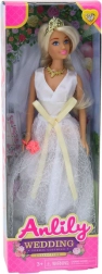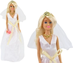 Op haar hoofd draagt ze een gouden kroon, waardoor ze de echte koningin van deze speciale dag is. Dit decoratieve accessoire verleent de pop een uitzonderlijke elegantie en prestige. Haar nek is versierd met een prachtige ketting die met zijn zachte glans de aandacht trekt. Dit maakt van Lalka Anlily niet alleen een stuk speelgoed, maar ook een inspiratie voor fantastische huwelijksverhalen.