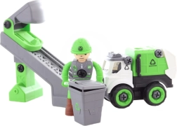 Kunststof set van een vuilniswagen met figuurtje en accessoires voor jongens bevat alles voor uren speelplezier. Met deze set kunnen kinderen zich uren vermaken met het verwerken van afval.