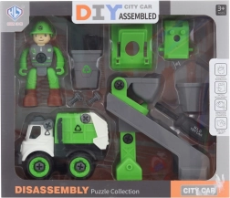 Deze schroefbare vuilniswagenset is het ideale speelgoed voor kinderen vanaf 3 jaar die van auto’s en rollenspellen houden. De set bevat: