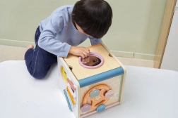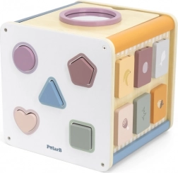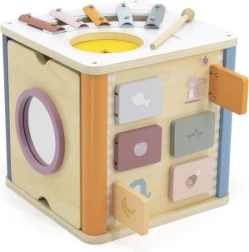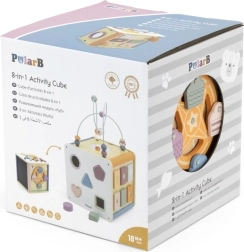 Viga PolarB Educatieve kubus 8-in-1 biedt acht verschillende activiteiten die diverse aspecten van de ontwikkeling van het kind ondersteunen. Het speelgoed bevat: