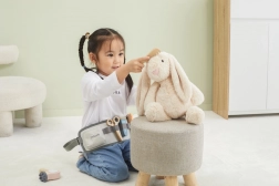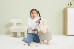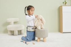 Deze kappersset is ontworpen zodat kinderen hun creativiteit kunnen ontwikkelen via rollenspel. Hij bevat diverse houten tools, zoals een föhn, kam, stijltang, schaar, scheerapparaat en scheermes. Met de verstelbare riem hebben kinderen alles wat ze nodig hebben altijd bij de hand. Alle onderdelen zijn veilig en geverfd met niet-toxische verf op houten basis.
