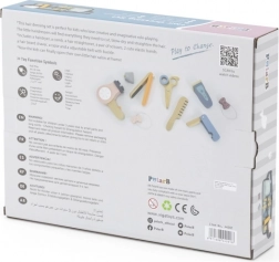 Dankzij verschillende houten tools zoals een schaar, kam en föhn biedt deze set alles wat nodig is voor creatief rollenspel als kapper.