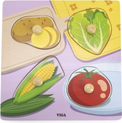 De Viga houten puzzel met groente is een geweldig hulpmiddel voor educatief spel vanaf 12 maanden. De puzzel is ontworpen om de hand-oogcoördinatie te stimuleren en geheugen en logisch denken te ontwikkelen. Dankzij de knopjes op de afzonderlijke stukjes kunnen kinderen de groentestukjes gemakkelijk in de juiste openingen plaatsen.