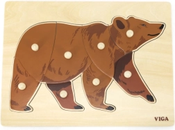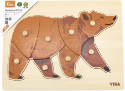 De houten Montessori-puzzel van VIGA met een berenmotief heeft 8 stukjes met knopjes voor gemakkelijk vastpakken. Stimuleert fijne motoriek, oog-handcoördinatie en vormherkenning, terwijl de veilige, gladde afwerking van natuurlijk hout ideaal is voor de allerkleinsten.
