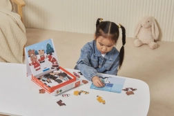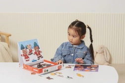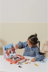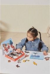 Deze creatieve set brengt de populaire houten magnetische aankleedspelletjes met het thema berenfamilie. Kinderen kunnen verschillende outfits en gezichtsuitdrukkingen samenstellen, beroepen en dagelijkse situaties uitproberen en hun eigen verhalen creëren. De 54 magnetische onderdelen bieden talloze combinaties voor urenlang speelplezier.
