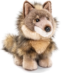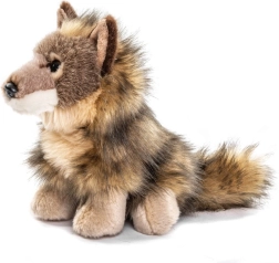 Deze zittende pluchen coyote valt op door zijn natuurgetrouwe kleuring en zachte pluche die uitnodigt om te aaien. De compacte afmetingen van 18 × 18 × 10 cm maken hem perfect voor op reis, in het bedje of naar de opvang.