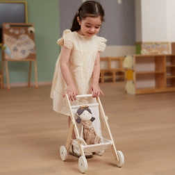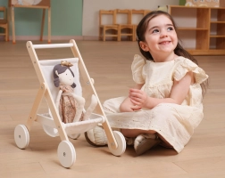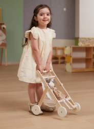 Gun kinderen realistisch rollenspel met deze elegante houten poppenwagen. Tijdloos design, hoogwaardige materialen en veilige afwerking zorgen ervoor dat elk “uitstapje” met de pop comfortabel en stil is. Rubberloopvlakken op de wielen verminderen vloergeluid en verbeteren de stabiliteit bij de eerste stapjes.
