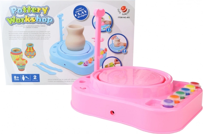 Pottenbakkersschijf voor kinderen met adapter, inclusief verven en kwasten. Creatieve set voor kinderen vanaf 8 jaar.