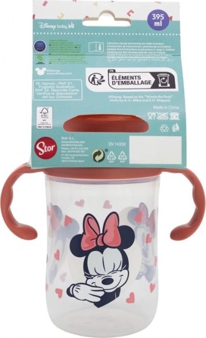 De oefenbeker heeft een praktisch design waarmee kinderen kunnen drinken door simpelweg met de lippen te drukken, ongeacht de stand van de beker. Dankzij de ergonomische handgreep is hij ook voor kleine handjes makkelijk vast te houden. Het speelse design met Minnie Mouse voegt plezier toe aan het dagelijks drinken en biedt een BPA-veilige ervaring voor je kind.