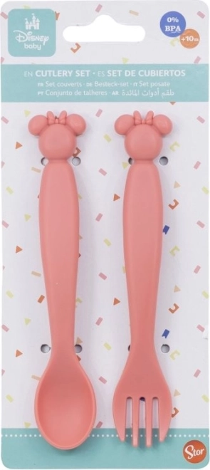 Set van twee plastic kinderbestekken met een uiteinde in de vorm van Minnie.