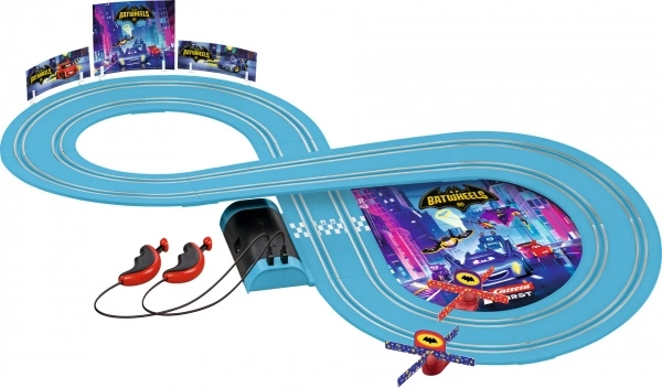 De instapracebaan Carrera First “Batwheels – Time for Action” brengt actieraces rechtstreeks naar de kinderkamer. Twee gedetailleerde autootjes, BAM en Redbird, in schaal 1:50 strijden op de helderblauwe baan met een lengte van 2,4 m. Voor extra plezier zorgen bewegende propellers, afzettingen en themadecoraties uit Gotham City.