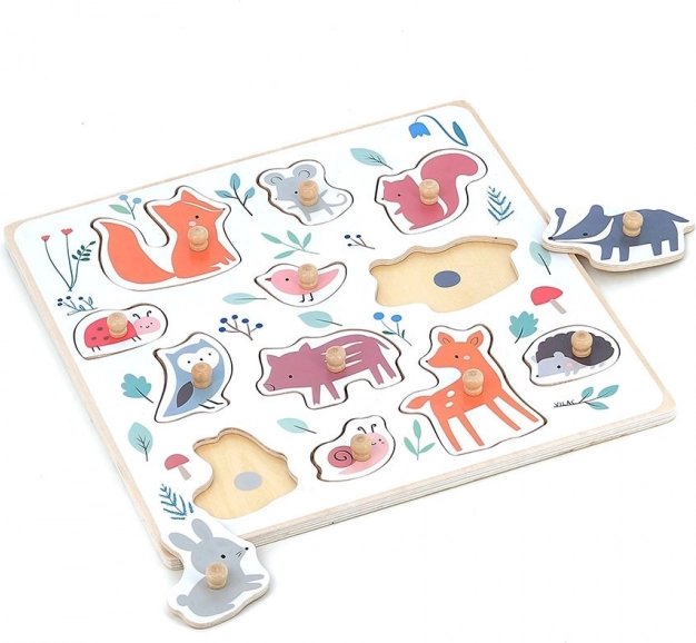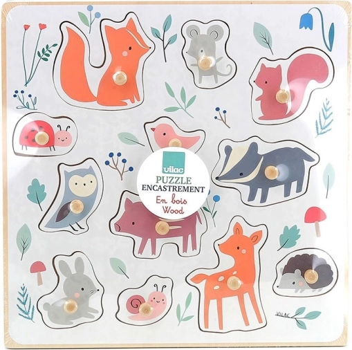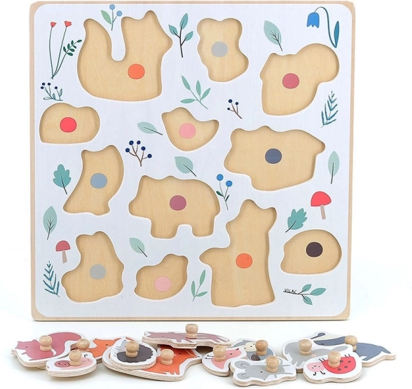 Houten puzzel met knopjes bosdieren VILAC – ontwerp Sarah Betz