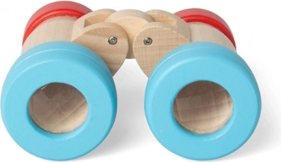 De houten verrekijker is ontworpen voor kleine kinderhanden – hij is gemakkelijk vast te houden, bestand tegen dagelijks gebruik en past dankzij zijn afmetingen comfortabel in een rugzakje voor uitstapjes. De realistische uitstraling en de kleurrijke accenten in rood en blauw prikkelen de verbeelding en moedigen kinderen aan om de omgeving te observeren.