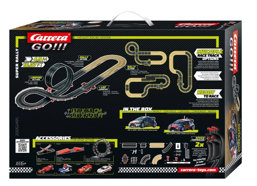 Betreed de wereld van echt racen met de CARRERA GO!!! Super Rally baan. De combinatie van snelle rechte stukken, een uitdagende looping en scherpe bochten garandeert intense fun en een competitieve ervaring voor zowel kinderen als volwassenen. De ideale keuze voor iedereen die van dynamische races houdt en zijn grenzen wil verleggen.