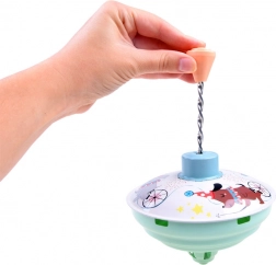 Deze hoogwaardige metalen tol borduurt voort op de geliefde klassieker van onze ouders. De bediening is intuïtief – druk enkele keren op de bovenste zuiger en de tol draait om zijn as. Dankzij de stabiele constructie draait hij soepel en geeft hij een typisch maar aangenaam geluid dat kinderen motiveert om te spelen.
