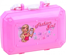 Een praktische kunststof kist met spiegeltje bewaart accessoires en voltooide sieraden en is ideaal voor onderweg.
