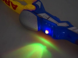 De pijlen zijn voorzien van rubberen zuignappen, zodat het spel volgens de regels zonder risico op letsel kan worden gespeeld. De boog is uitgerust met een kleine LED die knipperend gekleurd licht uitzendt, wat de aantrekkingskracht van het spel verhoogt, vooral in een donkere kamer of 's nachts. <\/span>