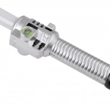De ergonomische zilverkleurige greep met knop voor licht en geluid zorgt voor een stevige grip en intuïtief gebruik.