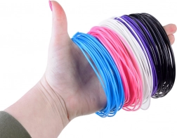 Ontdek het plezier van 3D‑tekenen met deze universele set filamenten voor 3D‑pennen. In de verpakking vind je vijf populaire kleuren (blauw, roze, wit, paars en zwart), elk met een lengte van ongeveer 8 meter – genoeg materiaal voor uren creativiteit thuis en op school.