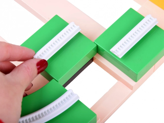 De variabele baan met 143 gekleurde delen maakt rechte stukken, bochten en verticale secties mogelijk. De delen klik je eenvoudig in elkaar en je kunt meteen racen.