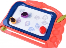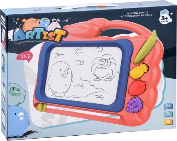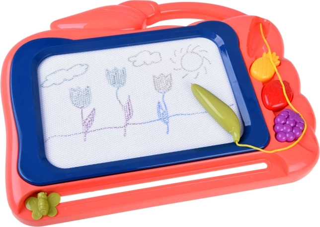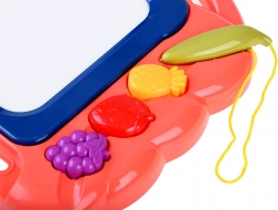 Dit creatieve tekenbord biedt een kleurrijke achtergrond waarop kinderen gemakkelijk tekeningen tevoorschijn toveren met de meegeleverde pen. Drie fruitvormige stempels (ananas, aardbei en druif) geven elk kunstwerk speelse details, stimuleren de fijne motoriek en vergroten het tekenplezier.
