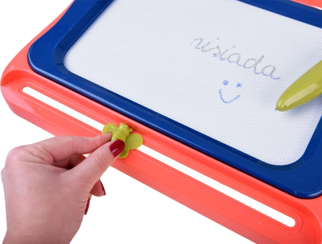 De praktische schuifknop in de vorm van een vlinder wist met één beweging de hele tekening. Kinderen kunnen keer op keer tekenen zonder papier.