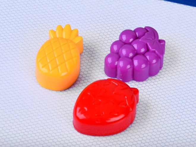 Drie stempels in de vorm van een ananas, aardbei en druif drukken eenvoudig leuke vormen op het oppervlak en vergroten de creatieve mogelijkheden.