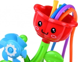 Kleurrijk plastic ontwerp met vrolijke bloemen die draaien als het water stroomt, wat zorgt voor interactief spel.