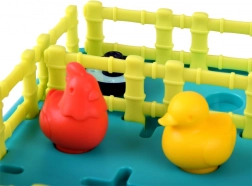 Het plastic speelbord met helder gekleurde dieren en hekken biedt een visueel aantrekkelijke ervaring, die de verbeelding en creativiteit stimuleert.