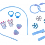 De set bevat een brede selectie stoffen, waaronder tule, linten, kralen, versieringen en andere decoratieve elementen die creatief knutselen stimuleren.