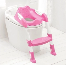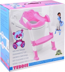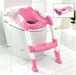 Roze Kinder Toiletzitting met Trap is de ideale oplossing voor kinderen die te groot zijn voor een potje, maar nog niet bij het toilet voor volwassenen kunnen. Het biedt een ergonomisch ontwerp met comfortabele handgrepen en antislip treden.