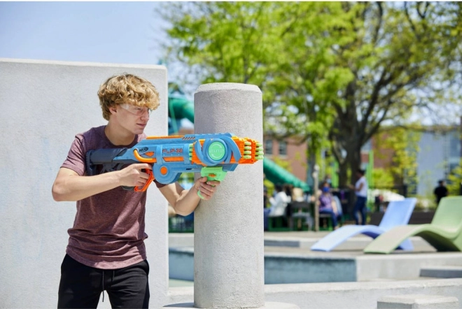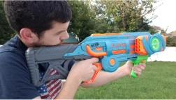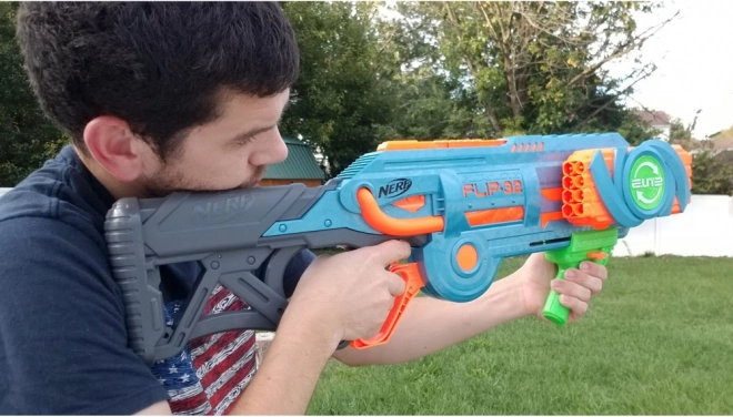 De Nerf Elite 2.0 Flip-32 Blaster is gemaakt van hoogwaardig plastic en de kogels zijn van veilig foam met rubberen uiteinden. Het systeem van draaibare magazijnen biedt flexibiliteit en voortzetting van het spel zelfs na het afvuren van de eerste lading kogels. Gewoon het magazijn 180 graden draaien en het plezier kan doorgaan. Twee schietopties bieden ofwel singeledig schot of dubbel schot.
