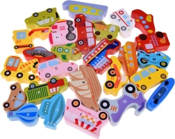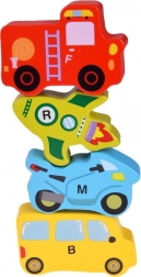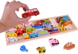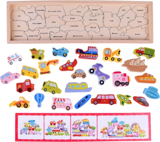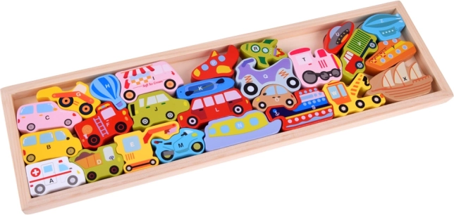 - Houten educatieve puzzel met voertuigen en letters