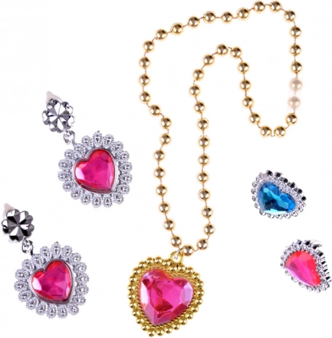 Een gouden ketting met een roze hartje, bijpassende oorbellen en ringen geven elke kleine fee extra flair. Ideaal voor elke gelegenheid.