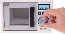 Het speelgoed is ontworpen met realistische details, waaronder een digitale timer en een draaiknop, waardoor interactief spelen wordt gestimuleerd.