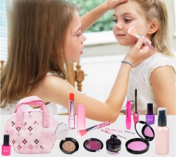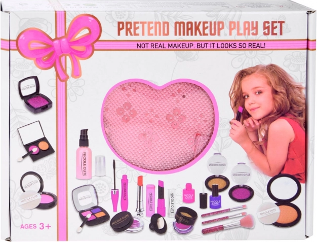 De set bevat verschillende soorten make-up zoals oogschaduw, lippenstift en blush, die niet-giftig en geschikt zijn voor de gevoelige kinderhuid.