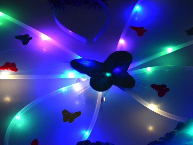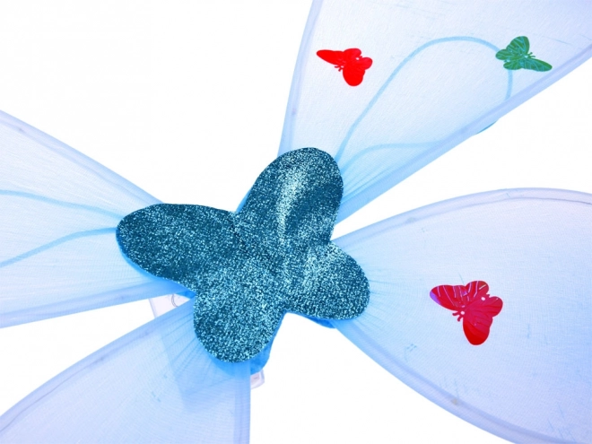 Stralende, lichte vleugels versierd met kleurrijke motiefjes in vlindervorm. Ze geven de perfecte illusie van een feeënvlucht.