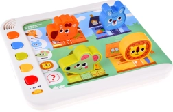 Ontdek een speelse en leerzame wereld met dit interactieve paneel geïnspireerd op de Montessori-methode. Kinderen spelen en leren tegelijk: ze oefenen tellen met de vlinder, leren vormen en kleuren kennen, dieren bij hun huisjes plaatsen en maken kennis met basisemoties (happy, sad, scared, angry). De Engelstalige gids geeft instructies en beoordeelt taken, zodat het kind direct weet of het antwoord klopt.