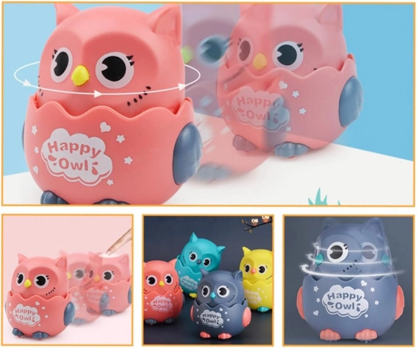 Dit schattige rijdende uiltje is gemaakt van duurzaam plastic, heeft grote ogen en gladde vormen die veilig zijn voor kinderhanden. Met het eenvoudige mechanisme hoef je alleen op het kopje te drukken en het uiltje schiet er vlot vandoor – kinderen volgen het met plezier en worden vanzelf gemotiveerd tot bewegen en kruipen.