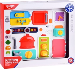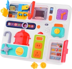 Interactieve keukenplank is een geweldige manier om je kind bezig te houden en te ontwikkelen. Dit kleurrijke gereedschap biedt veel knoppen en schakelaars met lichteffecten en geluidseffecten om verbeeldingskracht en motorische vaardigheden te stimuleren.