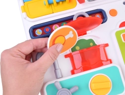 De interactieve keukenplank zorgt voor urenlang plezier voor je kleintjes. Het is gemaakt van hoogwaardig plastic en bevat veel elementen die de intellectuele activiteit stimuleren. Met melodieuze geluiden en knipperende lichten is elk spel uniek.