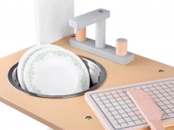 Deze kinderkeuken is esthetisch ontworpen en verzekert niet alleen uitstekend plezier, maar draagt ook bij aan de ontwikkeling van het kind. Kinderen houden van het nabootsen van volwassenen en deze keuken stelt hen in staat om te doen alsof ze koken, opruimen en andere huishoudelijke activiteiten uitvoeren.