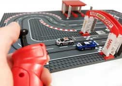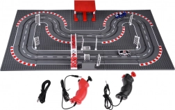 De modulaire basis met 15 basisplaten en bouwelementen voor START/FINISH en parkeren laat je bouwwerken van blokken rond de baan creëren en het circuit naar wens aanpassen.