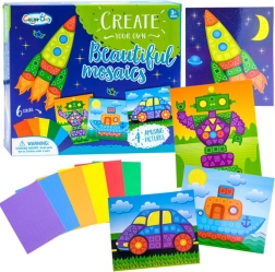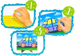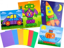 Creatieve set voor kinderen die graag knutselen. Set bestaande uit kleurrijke afbeeldingen die worden gemaakt met behulp van schuimvierkantjes, natuurlijk met aanpassing van kleuren en vormen.