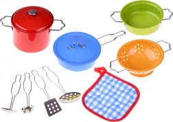 Deze hoogwaardige metalen set bootst echt keukengerei levensecht na en valt op door de levendige kleuren en het duurzame ontwerp. Kinderen bereiden er “lekkernijen” mee voor poppen en knuffels en oefenen tegelijk hun creativiteit en handigheid.