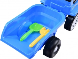Het stuur met knop speelt vrolijke melodieën af en de begeleidende lichtjes stimuleren de zintuigen van het kind. Onder het zadel bevindt zich een praktische opbergruimte voor kleine schatten. De aanhanger heeft openingen voor het opbergen van de meegeleverde gereedschappen – schep en hark – zodat kinderen kunnen genieten van veel creatief spel met laden, vervoeren en scheppen.