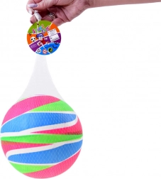 De bal heeft opvallende regenboogkleuren die zowel kinderen als volwassenen aanspreken.