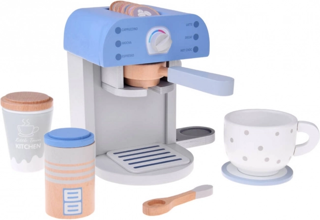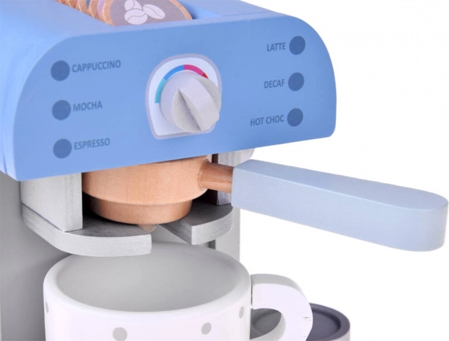Houten koffiezetapparaat voor kinderen in een elegante blauwe kleur is het perfecte speelgoed voor elke kinderkitchen. Deze stijlvolle en goed gemaakte set bevat een koffiezetapparaat en accessoires die zorgen voor leuk en leerzaam spel.