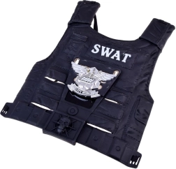 Het lichte kunststof vest met opvallende SWAT-opdruk geeft het spel een echte politielook. Makkelijk aan te trekken dankzij de elastische sluiting achter.