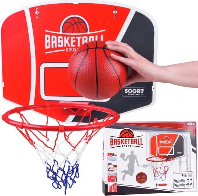 Complete basketbalset voor kinderen en beginners, met een duurzaam bord van 46 × 36 cm, metalen ring met een binnendiameter van ca. 30 cm, gekleurde net, bal en pomp. Eenvoudige montage aan de muur, binnen en buiten, ideaal voor het trainen van precisie en actieve fun. Robuuste uitvoering, compleet toebehoren en universeel gebruik zorgen voor veel sportplezier.